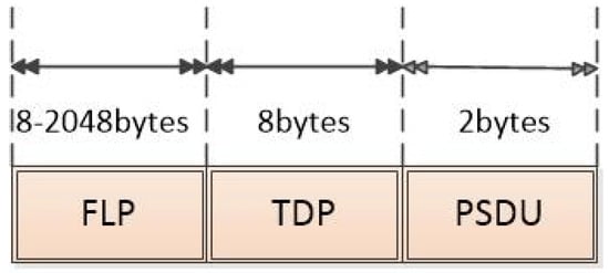 The IEEE 802.15.7 standard for Personal Area Networks in Wireless Optical Communications (OWPAN) relates the intended application with the broadcast topology, and the infrastructure will be able to transmit the cell identifier to the mobile nodes without forming a network with them, in a unidirectional communication and for which the destination address is not required. The standard defines the PHY II physical layer mode used mainly for indoor environments that allows one to use an OOK modulation with Reed Solomon Forward Error Correction (FEC) encoding. The physical layer supports a single data transmission mode that transfers one Physical Protocol Data Unit (PPDU) per frame, the structure of the PPDU frame is formatted as illustrated in Figure 3 [].