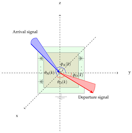 Figure 3. Angles of arrival and departure for a signal reaching the IS k-th element.