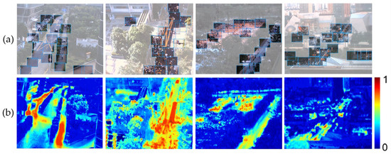 In the real world, visual information in broad areas also follows the principle of non-identical distribution. The field of view of a lens with a focal length of 16 mm is about 114°, and the images taken with this lens can simulate the visual range of the human eye. As shown in the real shot group (a) in Figure 2, it can be found that valuable visual signals are mainly distributed in areas where vehicles and people move, such as streets and stadiums. By calculating the content changes in the image sequence in the video, the time entropy map of group (b) in Figure 2 is obtained. The time entropy map reflects the spatial information distribution density of the scene. By observing the time entropy map, it can be found that the core information area accounts for about 25% of the entire field of view. Therefore, the unstructured array camera can make use of this principle, identify areas with visual value in the field of view through intelligent algorithms, allocate more camera field of view resources to these areas, and capture high-information videos with low-cost array cameras.
