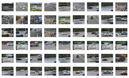 In the MS COCO dataset, there are mostly small scenes with single type objects, and the image size is relatively low. To ensure that the model trained has good feature point extraction performance in large outdoor scenes, this paper collected 5000 images with a resolution of 4000 × 3000 in three different outdoor scenes using five different focal lengths, and carried out transfer training on the well-trained network model. The collected images are shown in Figure 7.