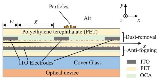 - Sharma, R.; Wyatt, C.; Zhang, J.; Mazumder, M.K.; Calle, C.I.; Mardesich, N. Performance Analysis of Electrodynamic Self-Cleaning Transparent Films for its Applications to Mars and Lunar Missions. In Proceedings of the 2007 IEEE Industry Applications Annual Meeting, New Orleans, LA, USA, 23–27 September 2007; pp. 434–437. [Google Scholar] [CrossRef]
