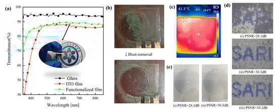 APA StyleFeng, Y., Tian, L., Huang, Z., Yang, C., Guo, L., Jiang, Y., Wei, C., Guo, Y., & Wang, H. (2024). Flexible Thin Film Functionalized by Initiative Dust Removal and Anti-Fogging for Optical Device Applications. Sensors, 24(1), 57. https://doi.org/10.3390/s24010057