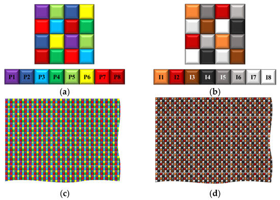 Based on our experiences in MSFA imaging, some modifications were introduced in order to improve the final sensor [42]. The modification was a change that was made at the level of the moxel (i.e., filter pixel array). Indeed, to compensate for the loss of sensitivity beyond 850 nm, a complex structure of the moxel (4 × 4 pixels) was utilized (Figure 1).