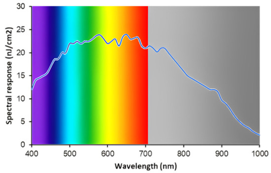- The spectral sensitivity of the sensor was required to be extended to the near-infrared range (i.e., 380–1000 nm);
