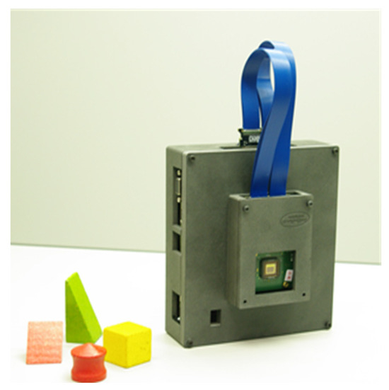 After mounting the MSFA on the image sensor, other pieces, including the sensor board, the driving board, the data transfer cables, and the box, were assembled. Figure 8 shows the developed camera. The box, designed via 3D printing, included two main parts: the small part in front for the sensor board and the back part for holding the driving board and other connections.