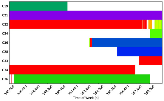 The UD code-carrier combinations obtained for the B1I/B1C case are depicted in Figure 5.