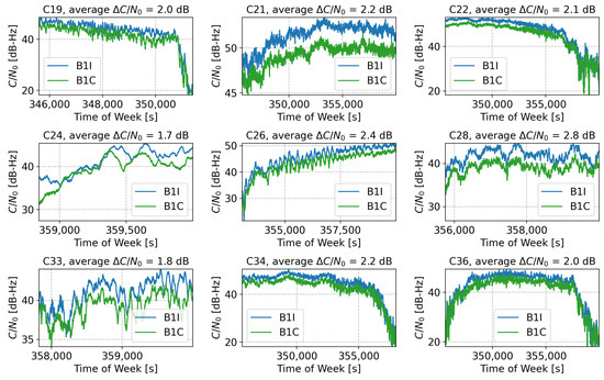 In this section, the experimental results obtained using the synthetic meta-signal approach are presented for the different Beidou cases discussed above. The B1I/B1C case, which is the most attractive for the small frequency separation of its side-band components, is analysed first. Other combinations are then analysed.