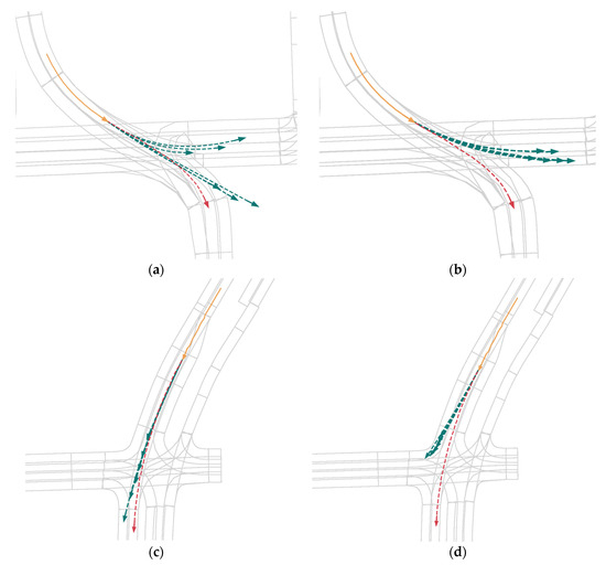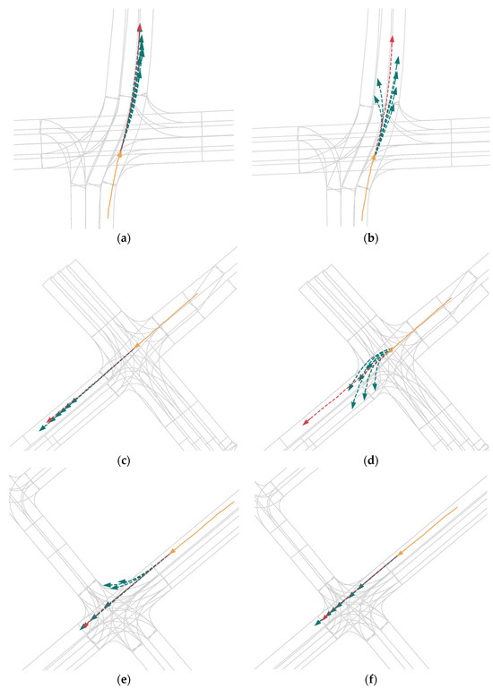 - Ngiam, J.; Caine, B.; Vasudevan, V. Scene transformer: A unified architecture for predicting multiple agent trajectories. In Proceedings of the International Conference on Learning Representations (ICLR), Kigali, Rwanda, 25–29 April 2022. [Google Scholar]