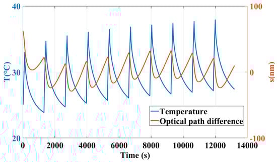 since the period of the temperature fluctuation is 22 min. Moreover, the high-frequency response of optical path difference curve is submerged in the noise, which is caused by the limited data number and simulation resolution.
