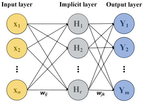 The BP neural network is a multi-layer feedforward neural network trained using the error backpropagation algorithm. It primarily consists of an input layer, hidden layers, and an output layer. The process of backpropagation in a BP neural network involves continuously adjusting the weights and thresholds based on the error values. The basic structure of the BP neural network is illustrated in Figure 1.