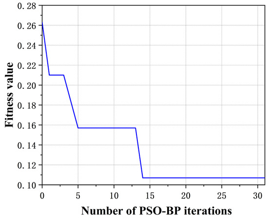 Figure 10 shows that the PSO-BP achieves the best fitness value in the 14th generation. The results of the program indicate that the PSO can enhance the convergence speed and optimization performance of the BP neural network, thus improving its tendency to become stuck in local optima.