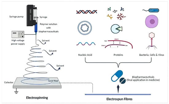 Schematic diagram for the demonstration of nanofibers produced by electrospinning. Reprinted with permission from Ref. []. Copyright 2023, Elsevier.