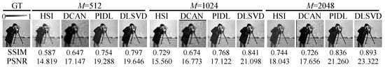 | 2048 | HSI | 20.1011 | 0.71247 | 17.8595 | 0.68960 | 18.4002 | 0.69709 |