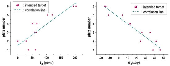 Experimental results for correlations of (left) and (right) according plate numbers by the boccia player introduced in Figure 17.