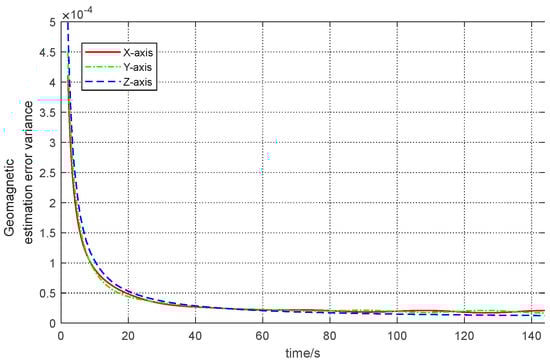 At first, the stability and reliability of the proposed RNCF is validated by the variance of the geomagnetic estimate () of the RNCF, as shown in Figure 5. It can be seen from this figure that the variance converges to a steady-state value, which indicates that the proposed RNCF is stably convergent.