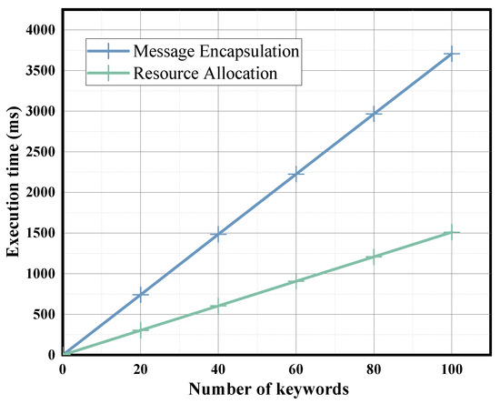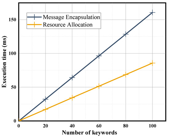 - Resource allocation. : The gateway runs the algorithm, and the input is the complete trapdoor T and the encryption keyword C. The algorithm outputs 1 if C contains the corresponding keyword m; otherwise, it outputs 0. Subsequently, the gateway can decide the resource allocation result based on the output and the corresponding tag of the edge node.