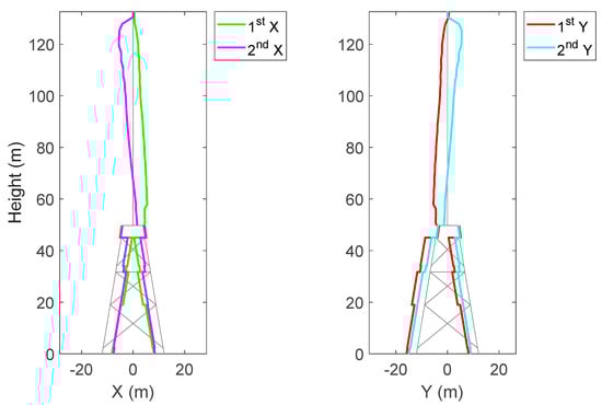 - Partovi-Mehr, N.; Branlard, E.; Song, M.; Moaveni, B.; Hines, E.M.; Robertson, A. Sensitivity Analysis of Modal Parameters of a Jacket Offshore Wind Turbine to Operational Conditions. J. March Sci. Eng. 2023, 11, 1524. [Google Scholar] [CrossRef]
