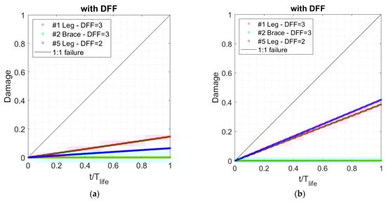 Finally, when performing a fatigue design analysis, there is an important DFF applied as a safety factor to account for a variety of uncertainties, including loading amplitudes, the potential for defects/corrosion damage, and the loading sequence. The design document DNV-ST-0126 Support Structures for Offshore Wind Turbines suggests using DFF = 2 for the members in the atmospheric zone with accessibility to inspection and DFF = 3 for the members in seawater with no inspection and repair accessibility [51].