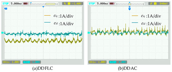 It can be seen that, with the same control parameters kd and kq, the proposed DDAC can significantly reduce the current tracking error compared to DDFLC.