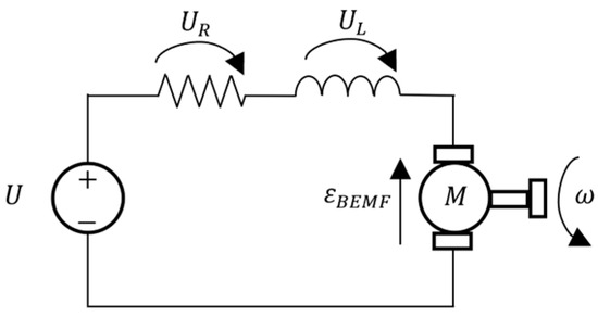 where is the driver electric loss coefficient, and is the power required to keep the various prototype electronics running: the Arduino, sensors, and driver. To find the current , the generic model for a DC motor was considered and is presented in Figure 7.