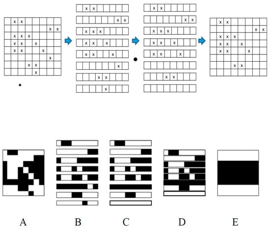 By replacing −1 with “black” and 1 with “white”, the basis image can be visualized, as depicted in Figure 1.