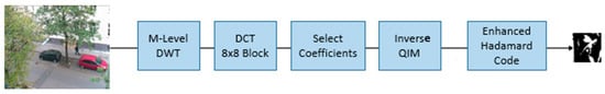 Once the appropriate DCT coefficients have been chosen, the inverse QIM (IQIM) is implemented. The system transmits the deciphered codewords in the form of a pulse stream. The original watermark is extracted using the Enhanced Hadamard Error-Correcting Code.
