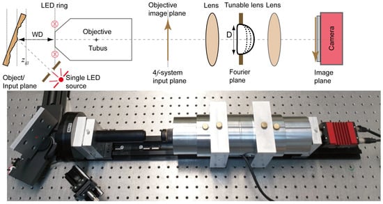- Agour, M.; Fallorf, C.; Bergmann, R.B. Fast 3D form measurement using a tunable lens profiler based on imaging with LED illumination. Opt. Express 2021, 29, 385–399. [Google Scholar] [CrossRef] [PubMed]
