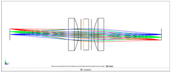 The hyperspectral imaging system was simulated by ZEMAX OpticStudio 20.1.2 software using the Sequential mode and then converted to the Non-Sequential mode in order to simulate the interference of coherent rays on the detector.
