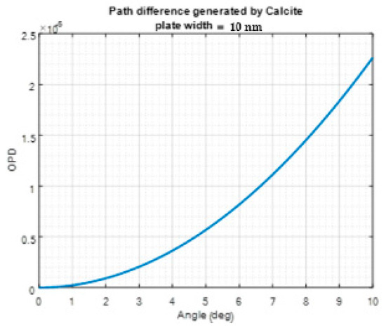 The OPD obtained as a result of passing at different angles through a 10 mm thick Calcite waveplate.