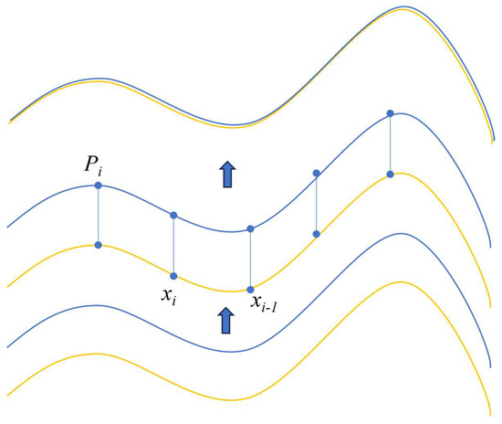 where represents the number of point cloud, and the reference frame, and represents the set of reference frame point clouds. The undulating lines depicted in Figure 3 serve as visualizations of obstacle surfaces. Within this context, signifies a point awaiting matching, while denotes a point extracted from the point cloud of the preceding frame. The objective lies in matching each point with its closest neighbor .