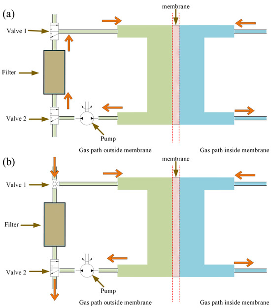 Membrane-based pulsed sampling method: (a) circulating mode; (b) sampling mode.