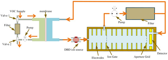Structure illustration of the developed membrane-based pulsed sampling IMS system.