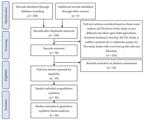 A concluding consensus meeting among the co-authors took place to deliberate on the content and suitability of the chosen papers in accordance with the above inclusion criteria and to address any divergent viewpoints. Conforming to PRISMA guidelines [48] to provide a clear representation of the methodology employed for screening the relevant literature, the systematic review identified 34 pertinent studies. The associated flowchart outlining the review process is presented in Figure 1.