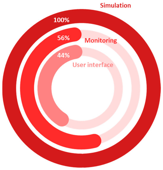 As can be seen in Figure 6, all the reviewed studies employed simulations, with a predominant reliance on ML algorithms, occasionally supplemented by physics-based modeling. The integration of ML algorithms in agricultural and forestry-related cyber-physical systems adds substantial value by enabling data-driven decision-making and predictive analytics. ML enables the thorough analysis of complex datasets and the identification of patterns, thereby enhancing the efficiency and accuracy of these, leading to enhanced resource management and optimized results [22,23]. Furthermore, nearly half of the studies (56%) incorporated real-time monitoring and user interfaces (44%), indicative of an advanced level of integration, aligning with the progression towards DSs and DTs. This signifies a maturation of technologies in the direction of more sophisticated and interactive cyber-physical systems capable of real-time data analysis and decision support. The incorporation of real-time monitoring and user interfaces also enhances the practical utility of these systems, fostering more informed and timely decision-making in open-field agriculture, livestock farming, and forestry.