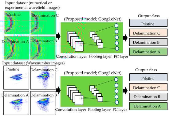 - Ijjeh, A.A.; Ullah, S.; Kudela, P. Full wavefield processing by using FCN for delamination detection. Mech. Syst. Signal Process. 2021, 153, 107537. [Google Scholar] [CrossRef]