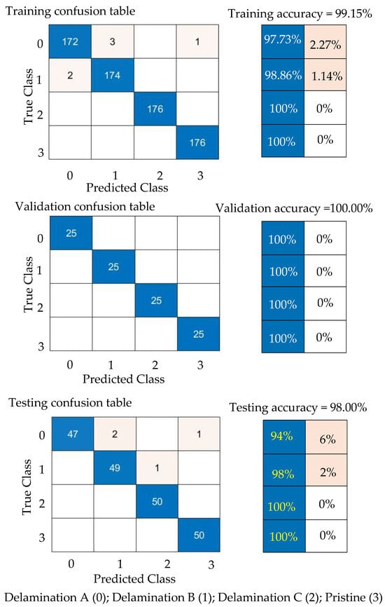 | Delamination B | 0.96 | 0.98 | 0.97 | 50 |