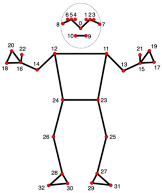 MediaPipe is an open-source software framework developed by Google and capable of performing real-time body posture estimation, face recognition, and hand gesture recognition from videos. This technology has been utilized in numerous research projects and has established itself as a vital tool for analyzing human behavior and activities. MediaPipe allows the extraction and use of key body parts from the coordinates shown in Figure 2. In this research, we use this technology to extract body posture coordinates and calculate joint angles.