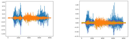 The constructed sEMG database used for this study consisted of 200 subjects. However, 84 subjects were excluded from the analysis due to various reasons such as “Device loses Bluetooth connection”, “Incompletion of muscle contraction/relaxation”, “Insufficient number of repetitions”, and “Muscle not activated”. These exclusions were made based on the criteria mentioned in the cited paper. Figure 8 illustrates the results obtained from the sEMG signals for Gesture 10 of Subject 5, visually representing the findings. The constructed sEMG database is publicly available at the IT Research Institute of Chosun University, accessible through their website (http://www.chosun.ac.kr/riit, accessed on 21 February 2022). The unfiltered raw sEMG data are provided in text files and MATLAB files. However, only the EMG data of Gestures 1 to 3 performed by 100 subjects, including those excluded due to errors, are disclosed for non-commercial purposes. Access to the complete dataset requires signing a Memorandum of Understanding (MOU) with the IT Research Institute of Chosun University. The text files contain sEMG signals without notions of repetitions, while the MATLAB files include sEMG signals with notions of repetitions [44].