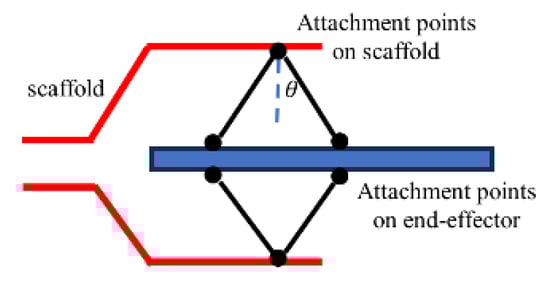 - The CD segment signifies the cable that pulls the end-effector from the scaffold. Its bending angle, denoted as , is calculated through robot kinematics during operation.