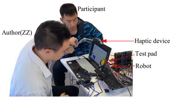 In the blind test, ten participants were invited to interact with the four areas shown in Figure 14g using the robot controlled via a haptic device. The aim was to evaluate the stiffness of these areas based on the force feedback from the device. The four areas of stiffness are ranked as follows: “Rigid (black)” > “Dragon Skin 30 (red)” > “Ecoflex 50 (yellow)” > “Ecoflex 20 (white)”. The areas were randomly rearranged for each test, and all forces generated in the negative direction of the z-axis were set to zero to prevent misjudgment and interference.