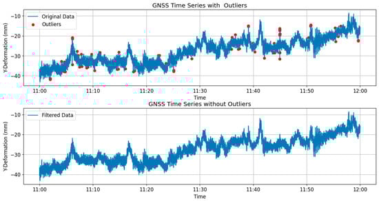 Original data and the filtered data for GNSS time series.