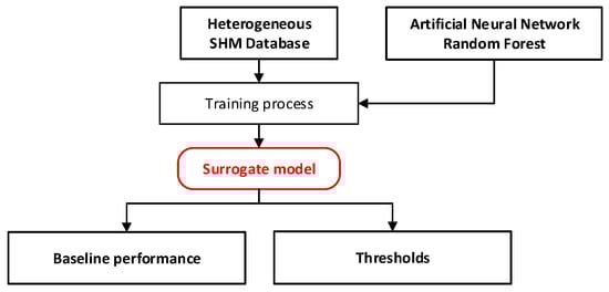 Sub-module (vi) is an updating process with the core function of recalling sub-modules (i) and (ii) to update the FE model and regenerate a surrogate model, including the knowledge of structural changes due to damage or maintenance activities. Subsequently, a new set of training data for damage detection, baseline performances, and thresholds for change detection will be created. Generally, adjusting the threshold typically entails updating both the finite element model and the surrogate model using recent sensor data collected over a quarter or a year, alongside structural maintenance activities information.