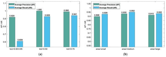 - Calculating the average recall (AR) with a limit of 1, 10, and 100 bounding rectangles per image, which demonstrates the model’s recall capability.