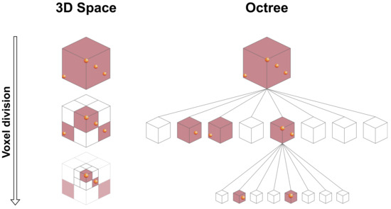 - Meagher, D. Geometric modeling using octree encoding. Comput. Graph. Image Process. 1982, 19, 129–147. [Google Scholar] [CrossRef]