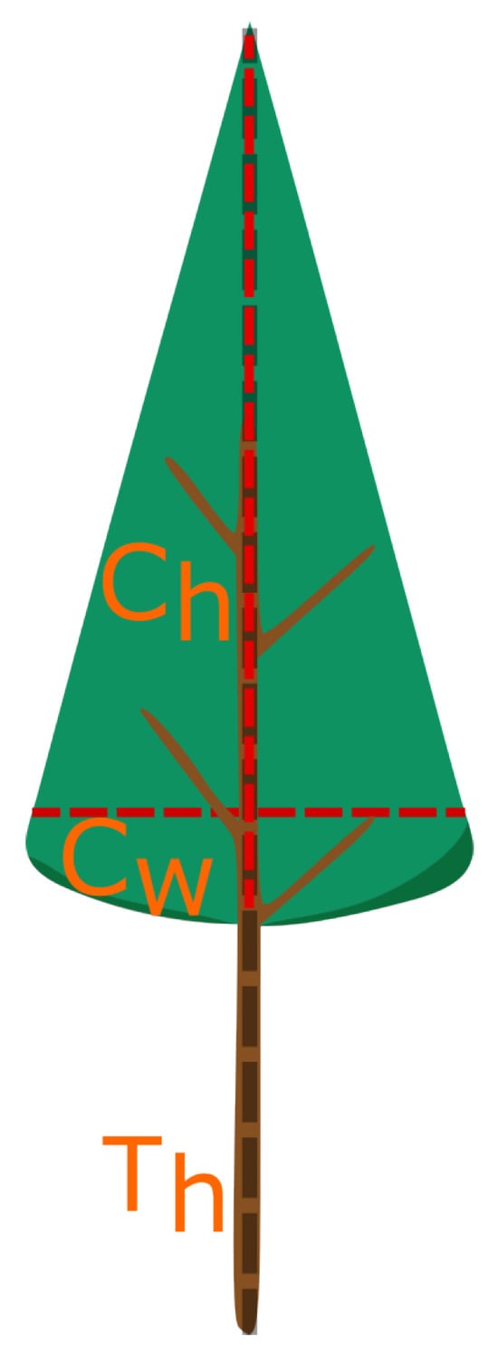 Single-tree model. Each tree has its height , corona height , and corona width .