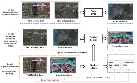 Semi-Supervised Learning: Exploring semi-supervised learning algorithms that leverage large amounts of unlabeled remote sensing image data to enhance the model’s generalization ability and performance, offering an effective solution for target detection under resource-constrained situations [,].