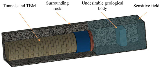 In recent years, the number and scale of urban tunnel construction projects have increased. The shield method is widely used in urban tunnel construction projects because of its advantages of a high degree of automation, fast excavation speed, and comprehensive economic benefits. However, the increasingly complex geological environment has brought great uncertainty to the use of the urban shield method in construction, significantly increasing the difficulties and dangers of tunnel construction [1]. When carrying out shield-tunnel construction, a variety of adverse geological conditions, including karst, faults, and unlimited groundwater recharge, may be encountered. Blind excavation can lead to sudden disasters, such as unforeseen water surges, collapse, and equipment damage [2], and can even lead to catastrophic consequences such as massive property losses and casualties [3,4]. Therefore, the early detection of adverse geological conditions at the front of the tunnel face of a shield tunnel can effectively prevent the occurrence of geological disasters and ensure the safe and efficient excavation of shield tunnels [5].