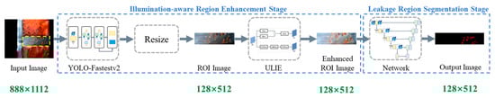 - To alleviate blurred image issues caused by uneven illumination, we propose the ULIE method via an illumination-aware mechanism to enhance the texture details of leakage within the ROI.