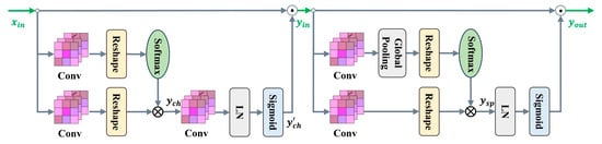The process of the SSAM spatial-only module is similar, with one part from the skip connection, and the other part from the spatial attention mechanism, as shown in Equation (14) for specific operations: