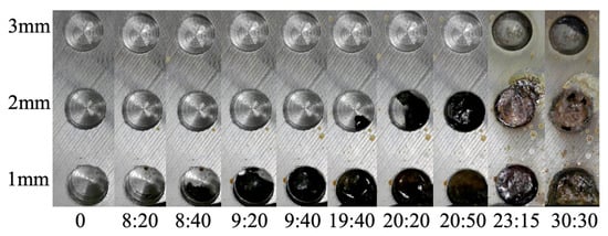 Subsequently, electrolytic corrosion tests were conducted at an initial voltage of 30 V. The corrosion test lasted for 50 h after confirming sufficient corrosion conditions at observation hole 3, where the corrosion depth was set to 3 mm.